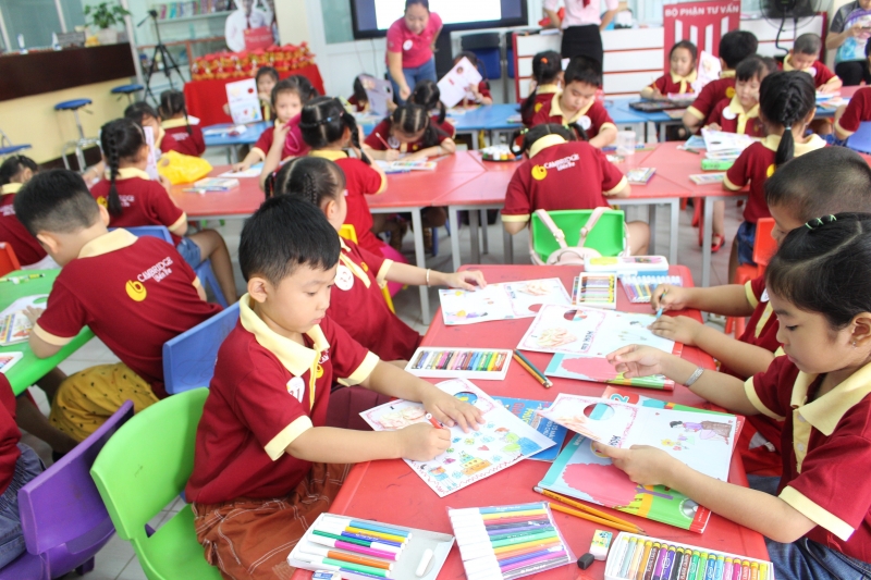 Các bé vô cùng thích thú khi học tiếng Anh theo phương pháp mới tại Cambridge Bến Tre. Ảnh: CB